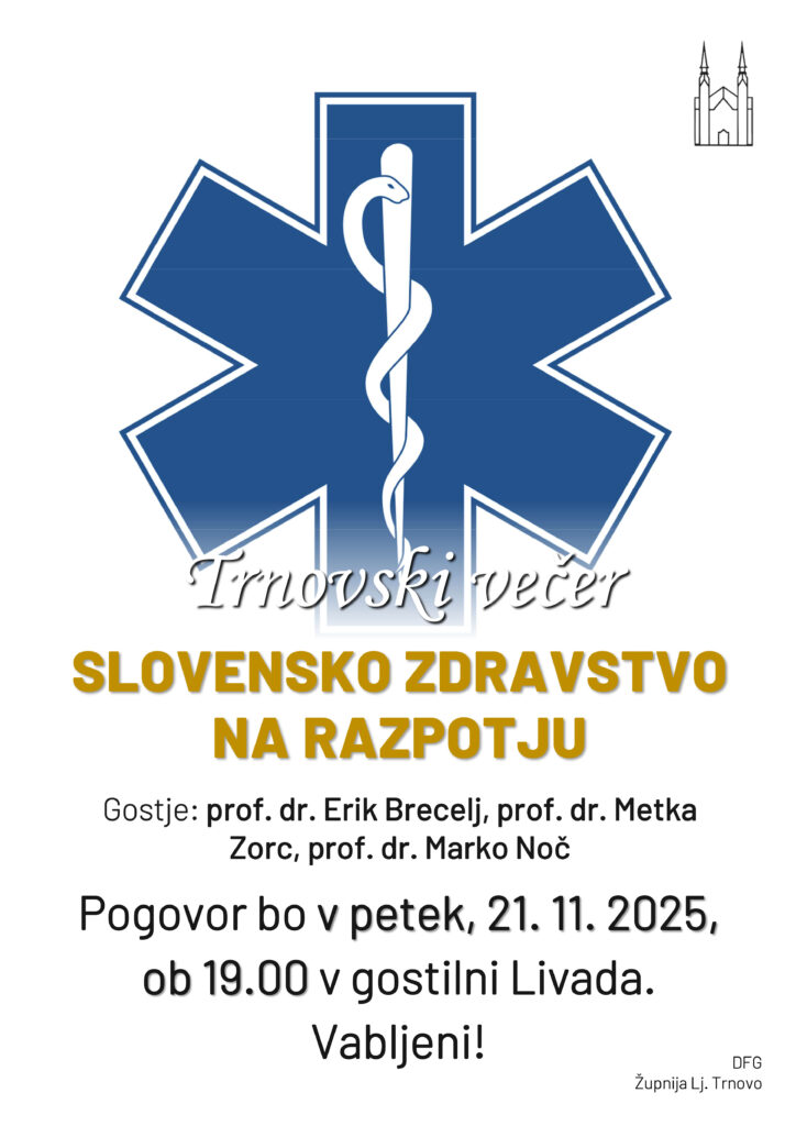 Če želite izvedeti katera so resnična ozadja slovenskega zdravstva, kateri so interesi posameznikov, kje tičijo vzroki za težave, zakaj Slovenija ne omogoči več zdravstvenih zavarovalnic v korist pacientov, kakšne zlorabe se dogajajo za ohranitev statusa quo ante prius, kje bi bile dobre rešitve za vsakega državljana, kako bi postali vodilna država ob tako strokovno usposobljenih in svetovno priznanih zdravnikih, potem ne zamudite Trnovskega večera na Livadi v petek, 21. novembra 2025 ob 19. uri.