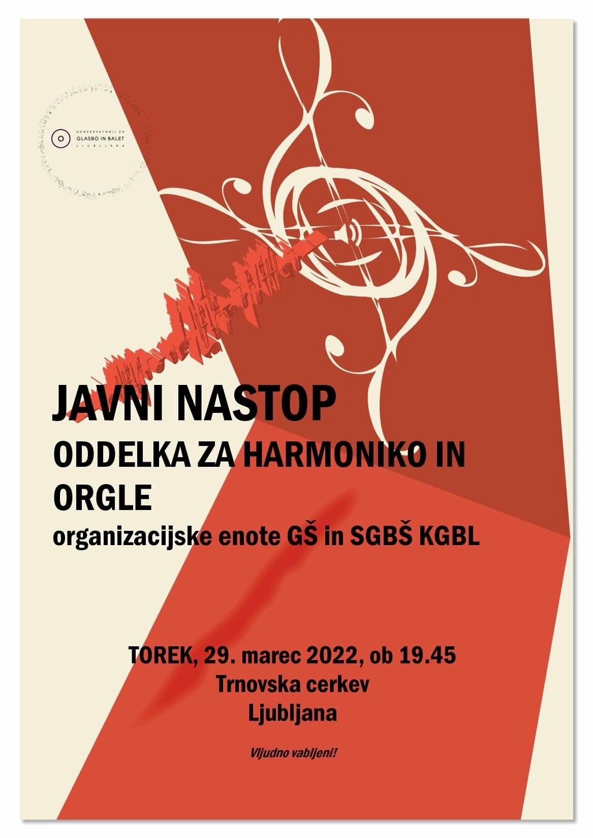 Vabljeni na javni nastop oddelka za harmoniko in orgle organizacijske enote GŠ in SGBŠ KGBL, ki bo v torek, 29. 3. 2022 ob 19.45, v…