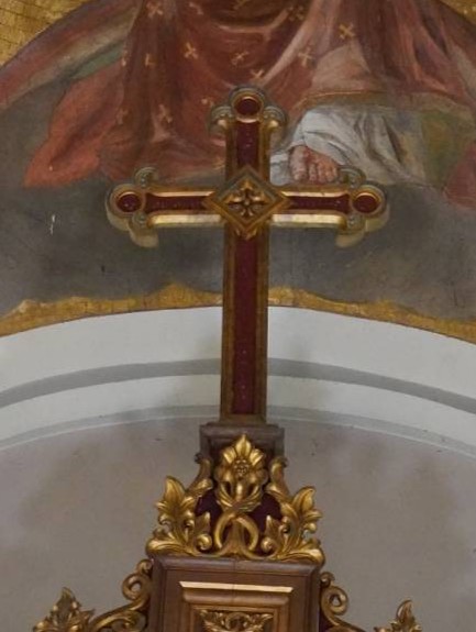 Na oltarni atiki na vrhu je velik križ.